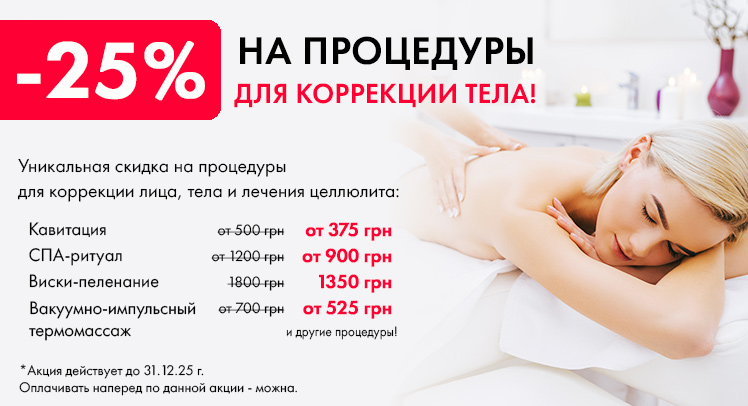 | 20 мин | Кавитация (1 зона: плечи / живот / бока / ягодицы / бедра / колени) |