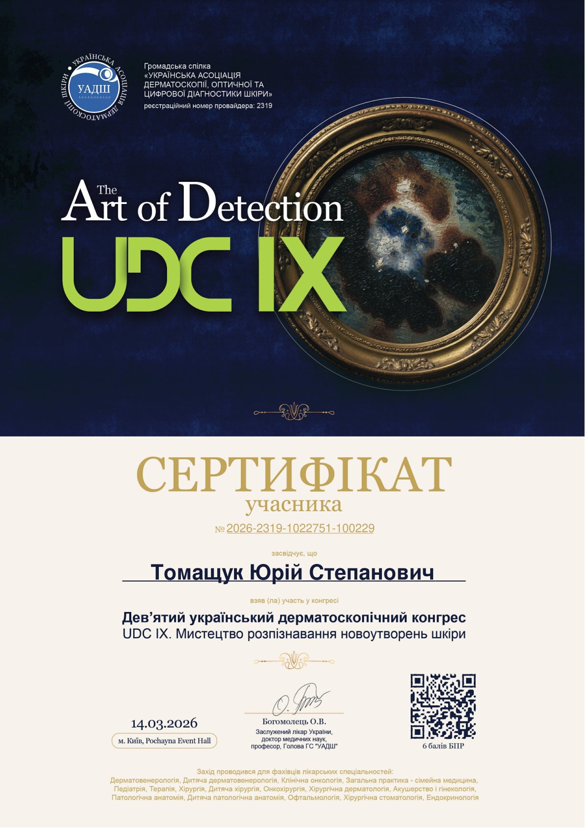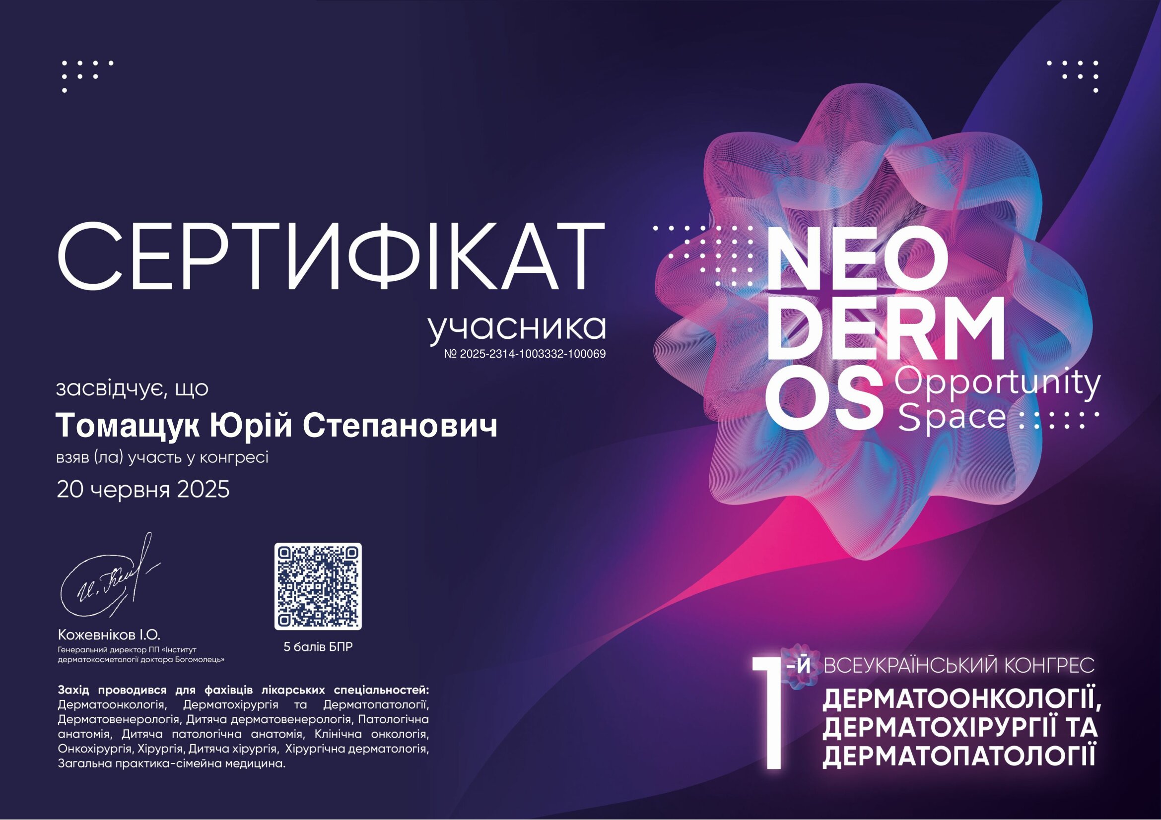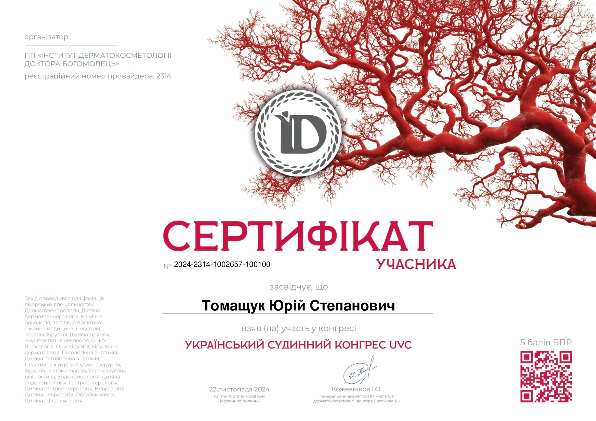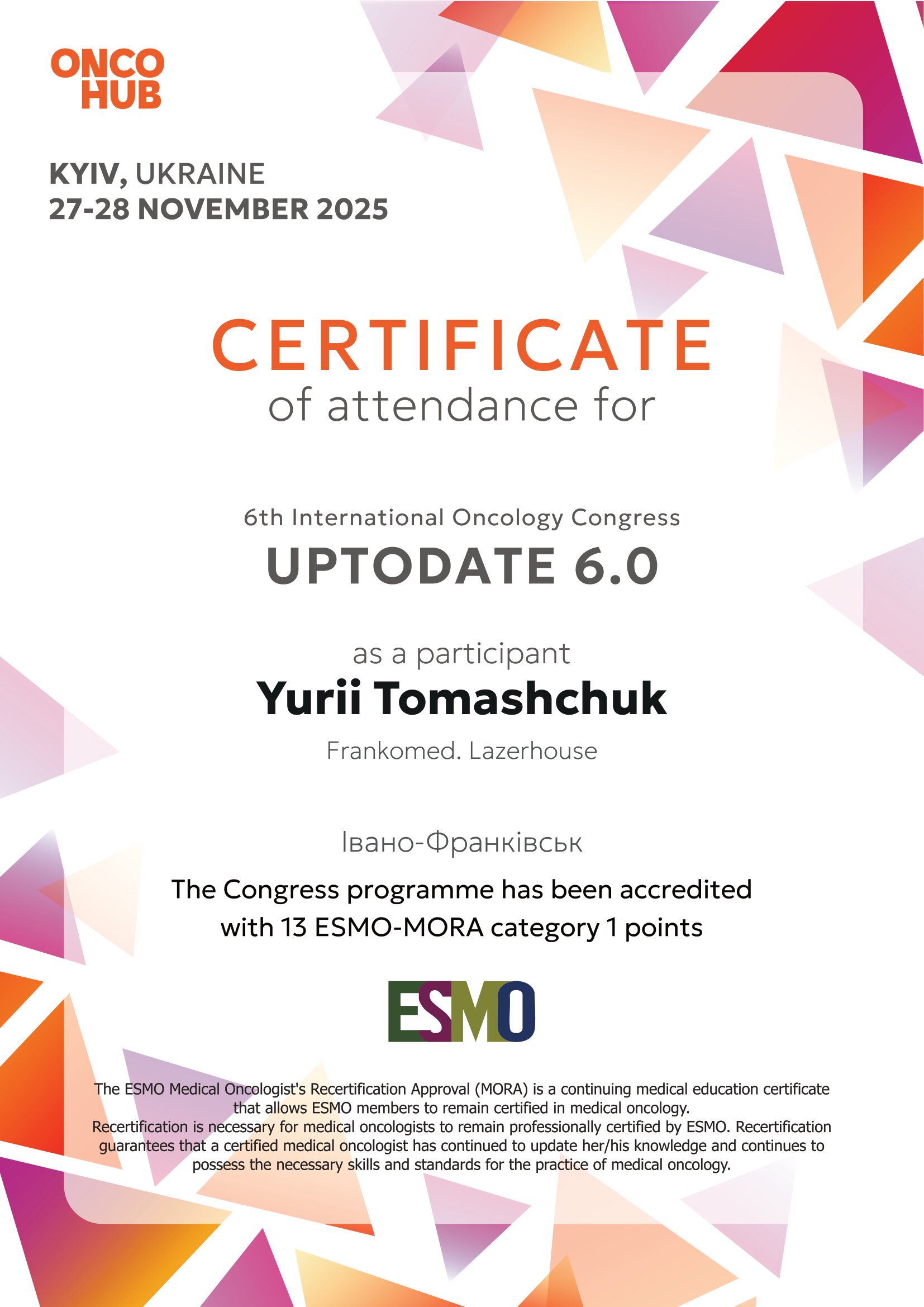 - UPTODATE 5.0 (2024) - участь у навчальному заході/курсі (за наданими даними).